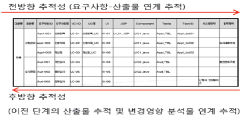 - 추적성은 시스템 내 서로 다른 단계의 요구사항들 사이에 관계를 제공하는 기술