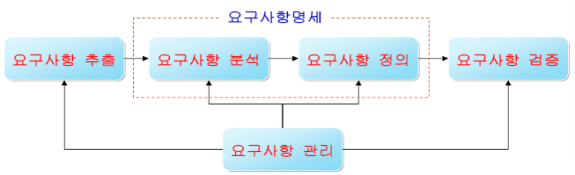 - 고객(사용자)에 의해 요구되는 소프트웨어 혹은 시스템이 가져야 하는 기능, 서비스, 제약사항 등을 정의한 명세를 분석하고 수립하는 행위