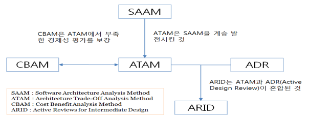 SAAM | 다양한 수정관점에서 아키텍처 분석 최초로 정리된 아키텍처 평가 방법으로 품질에 대한 주장들을 최초로 검증 |