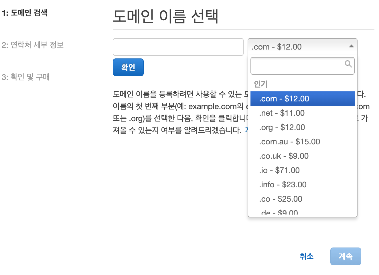 도메인 구입 비용이 저렴하며, 매년 자동으로 갱신해 주고 등 그 외 많은 기능이 있는 AWS Route53을 이용해 적용해보기로 했다.